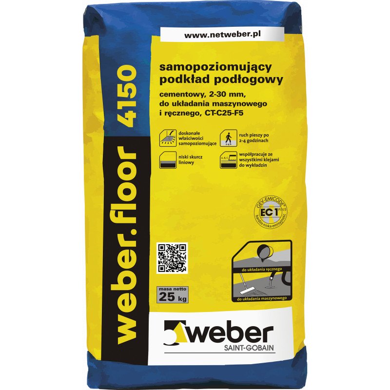 weber.floor 4150 przy aplikacji maszynowej pozwala na bardzo szybkie wykonanie dokładnie wypoziomowanego podkładu na dużych powierzchniach (wydajność ok. 400 m2 na godzinę).