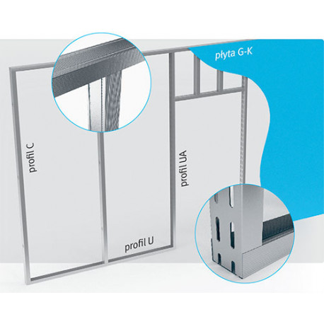 Profil stalowy obwodowy stosowany w systemach z użyciem profilu CW. Montowany jest do podłoża za pomocą kołków rozporowych stanowiąc podstawę montażu profili CW. Profile UW, zapobiegając poprzecznemu ruchowi profili CW, gwarantują prostoliniowe ułożenie konstrukcji ściany.