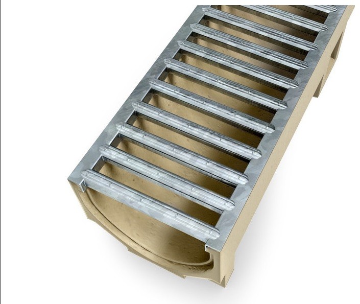 Kanał w kształcie V, z bezśrubowo mocowanym rusztem ze stali ocynkowanej