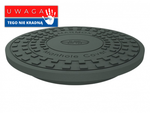Pokrywa włazu kanałowego z polimerbetonu DO 600 typ 1 H50 klasy D400 wolny prześwit 600 mm bez wentylacji Marmox do uzupełnienia już zabudowanych korpusów istniejących zwieńczeń studzienek kanalizacyjnych. Pokrywa zgodna z normą PN-EN 124-5:2015, do jej produkcji zastosowano opatentowaną technologię produkcji wysokogatunkowego polimerbetonu.