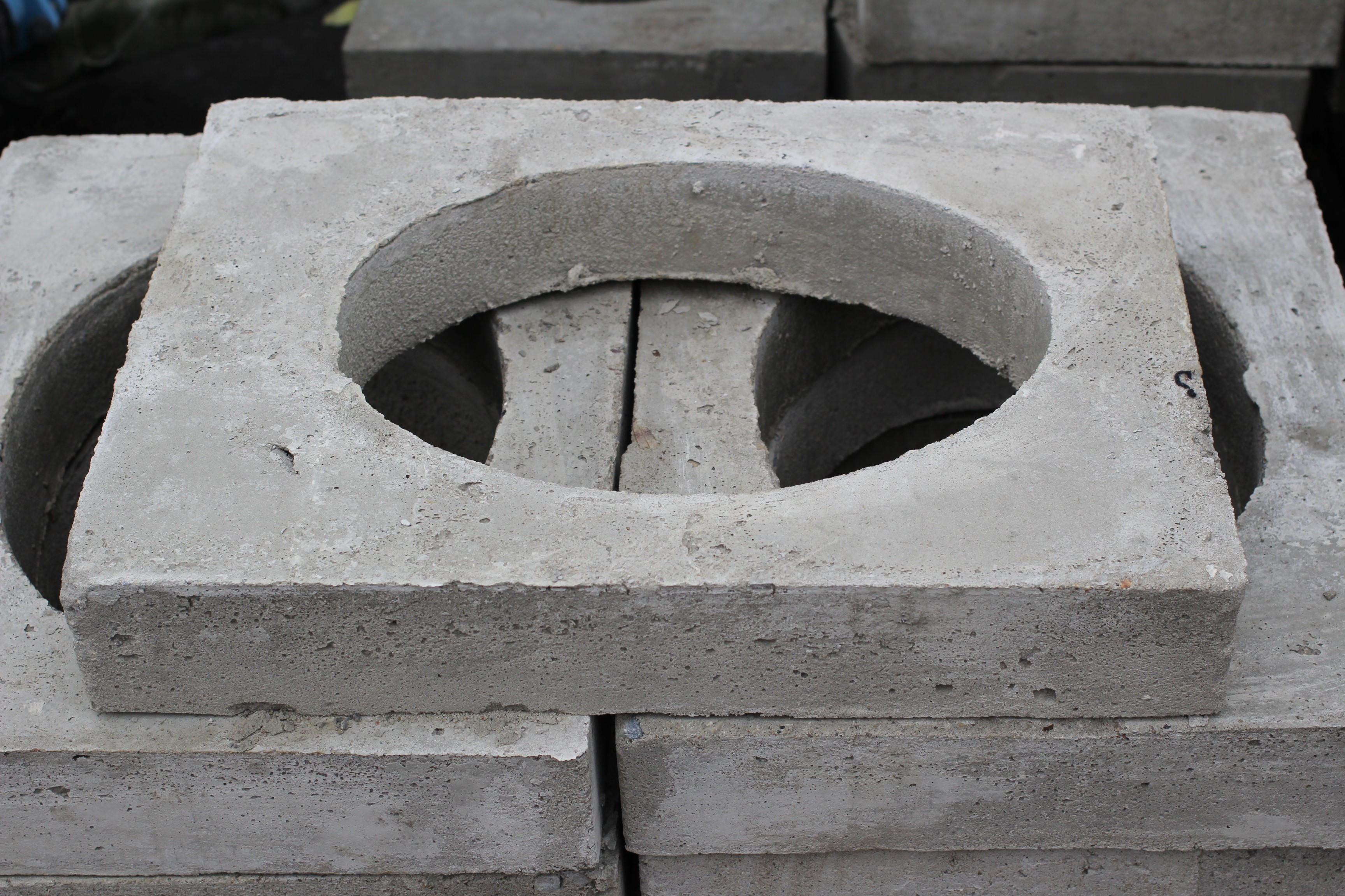 Prefabrykowana płyta betonowa do umocnienia skrzynek hydrantów umieszczanych na sieciach wodociągowych.