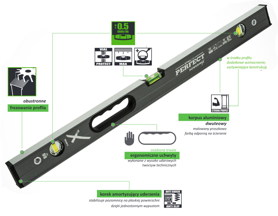 Bardzo duża dokładność pomiarowa 0,5mm/1m.