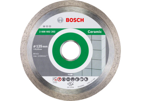 Diamentowa tarcza tnąca Standard for Ceramic umożliwia skuteczne cięcie w płytkach. Stały kołnierz tnący zapewnia znakomite rezultaty w przypadku każdego rodzaju płytek. Za wysoką jakość odpowiada znajdujące się w Szwajcarii centrum kompetencyjne Bosch w zakresie technik diamentowych. Do stosowania przy cięciu ceramiki, porcelany i gresu. Nadaje się do użytku ze szlifierkami kątowymi.