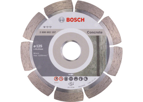 Diamentowa tarcza tnąca Standard for Concrete umożliwia skuteczne cięcie w betonie. Zoptymalizowana osnowa diamentowa zapewnia solidne rezultaty dzięki wysokiej jakości wykonania tarczy. O utrzymanie tych standardów dba znajdujące się w Szwajcarii centrum kompetencyjne Bosch w zakresie technik diamentowych. Tarcza przystosowana jest do cięcia betonu.