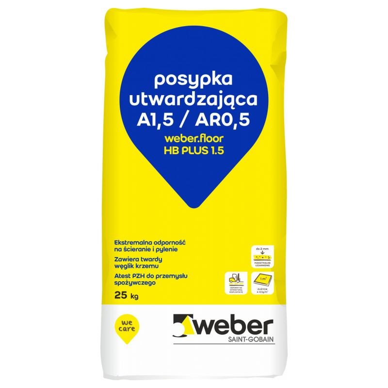 weber.floor HB PLUS 1.5 jest przeznaczony do wykonywania zacieranych, odpornych na ścieranie, monolitycznych posadzek betonowych metodą „suche na mokre”.