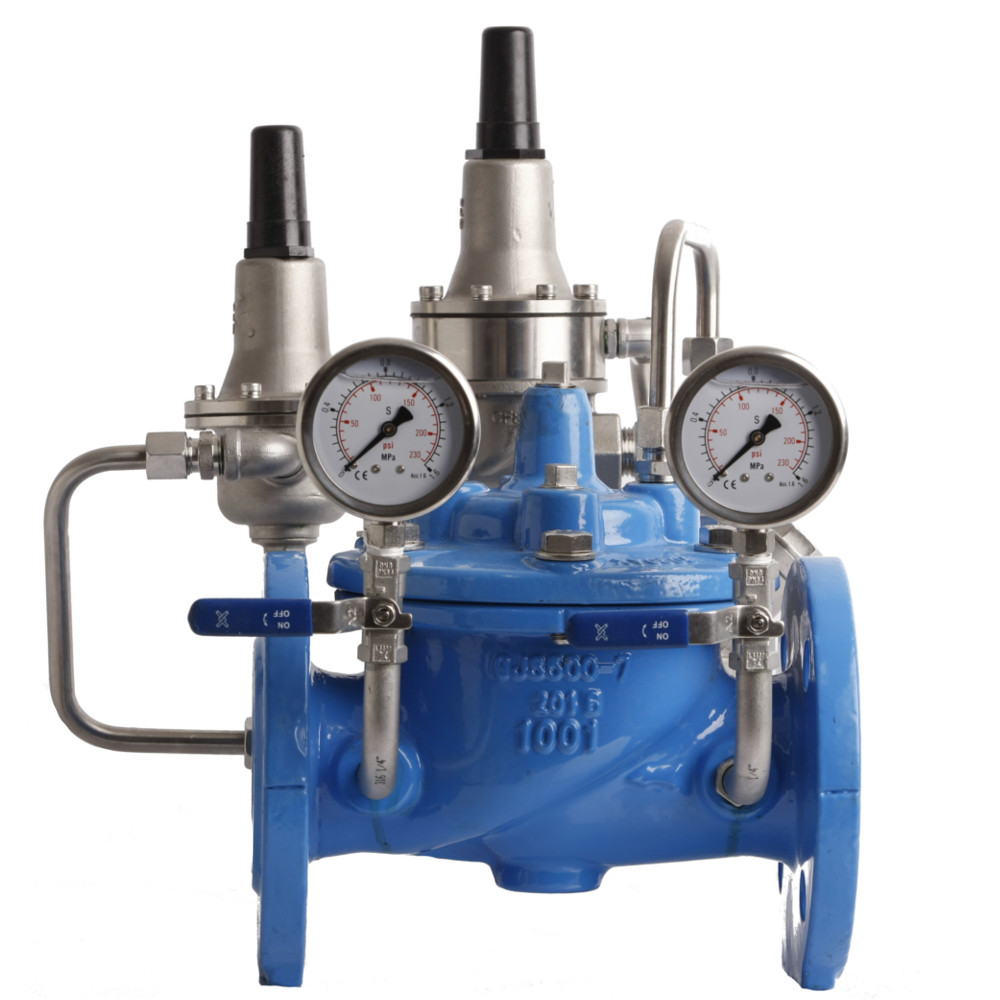 Zawór uniemożliwiający rozchód wody za zaworem, jeśli ciśnienie na wejściu, spadnie poniżej ustalonej na pilocie wartości. Stosowany np. za odgałęzieniem przeciwpożarowym – do zabezpieczenia odpowiedniego ciśnienia w rurociągu p.poż, poprzez odcięcie wody bytowej. W normalnych warunkach pracy – redukuje i stabilizuje ciśnienie wody bytowej. Korpus wykonany z żeliwa sferoidalnego GJS-400, zwieradło, sprężyna i prowadnica trzpienia ze stali nierdzewnej AISI 304, membrana: NBR wzmacniany nylonem. Dostępny w wersji z przyłączami gwintowanymi lub kołnierzowymi.