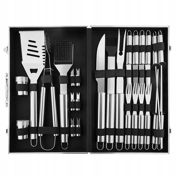 MEGA DUŻY ZESTAW AKCESORIÓW DO GRILLA W ALUMINIOWEJ WALIZCE