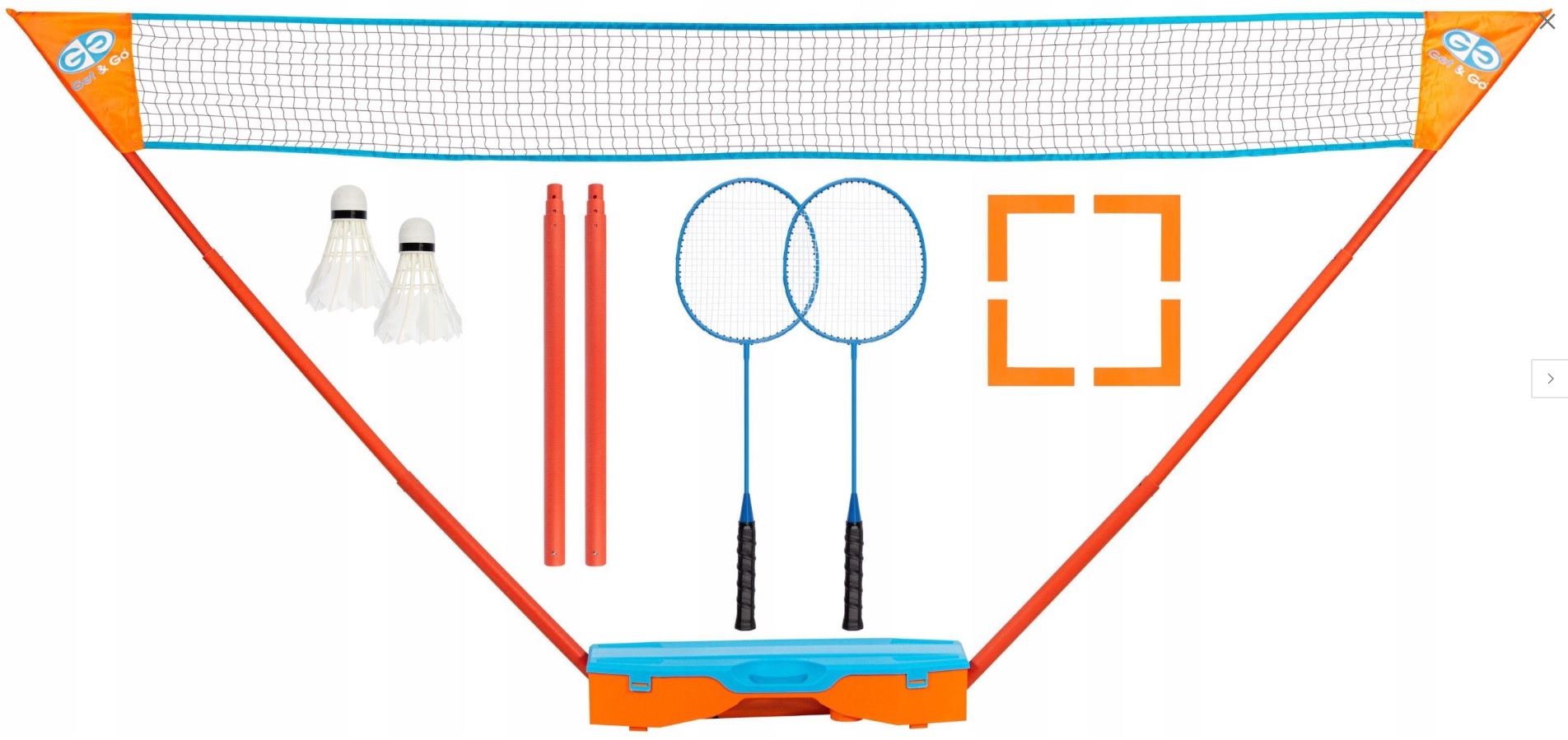 Zestaw do badmintona Get Go dostarczy Ci zabawy gdzie tylko zechcesz. Doręczany w kompaktowej walizce, która służy jako podstawa siatki. Wystarczy tylko włożyć do niej kijki, zawiesić na nich siatkę i już możesz zacząć cieszyć się grą. Zestaw jest kompletny, zawiera walizkę, kijki do montażu, siatkę, 2 rakietki i 2 lotki z lampkami LED - umożliwiające użytkownikowi grę w nocy.