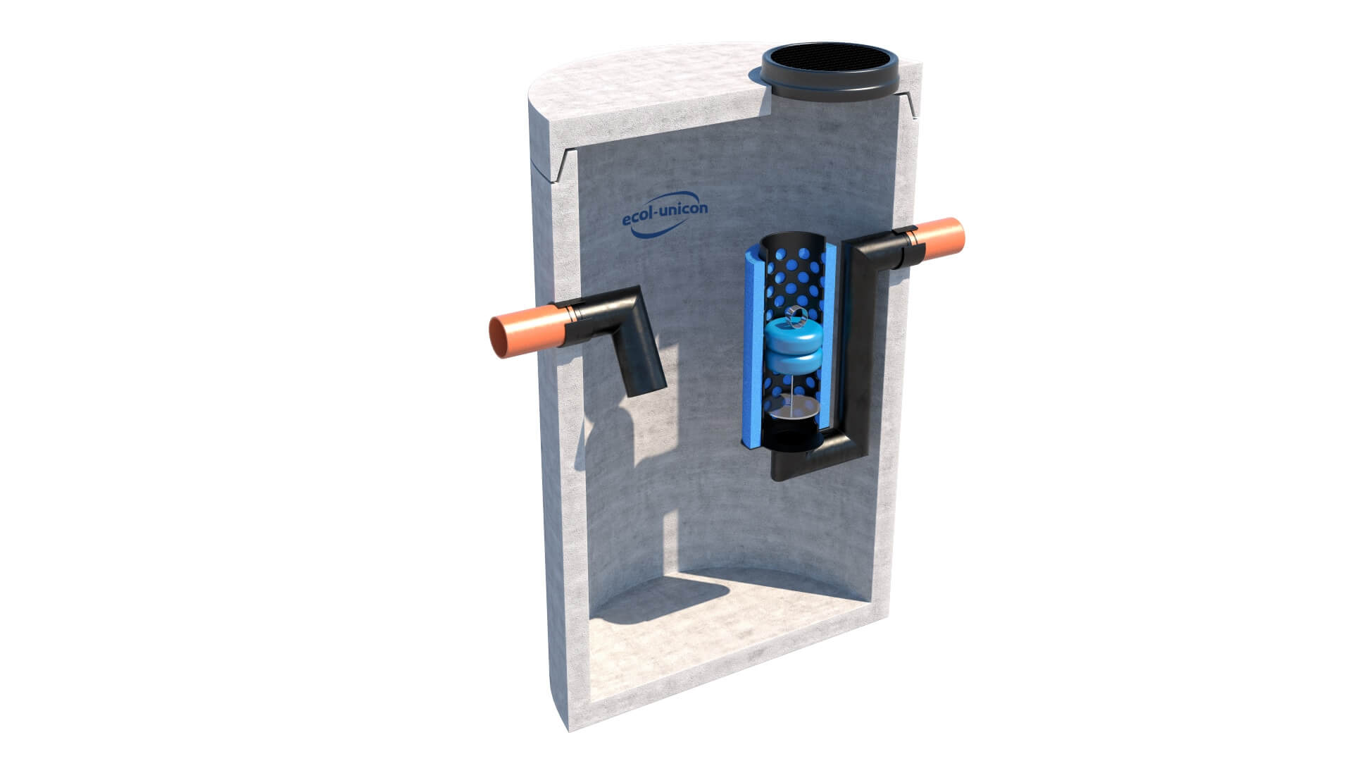 Separator koalescencyjny ze zintegrowanym osadnikiem ESK-H 6/600 Ecol-Unicon, Qnom[dm3/s] (NS) - 6, średnica rur wlot/wylot PVC-U pod kątem 180 stopni, H=1780 mm, separator bez włazu