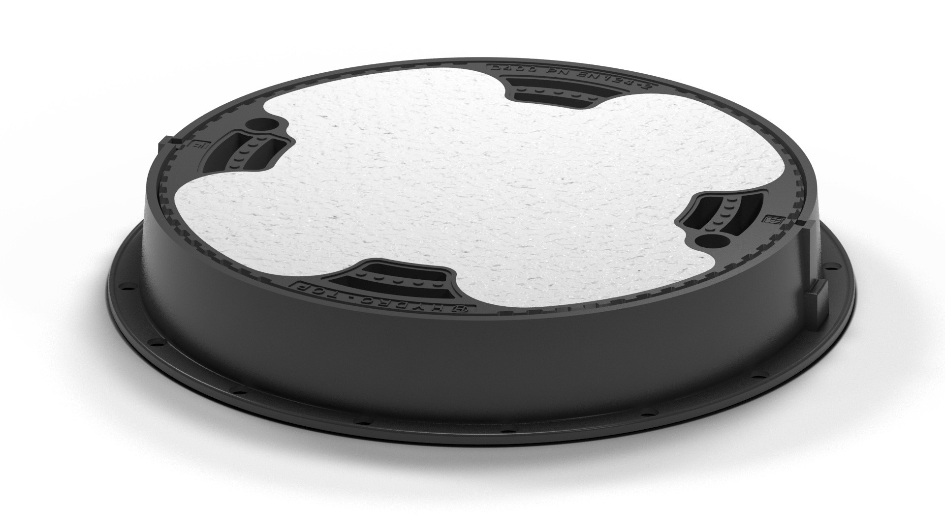 Właz kl. D400 z wentylacją, okrągły, wolny prześwit 600mm, wysokość 110mm. Korpus pełnożeliwny z wkładką TOPPREN, pokrywa z wypełnieniem betonowym, wkładka amortyzująca TOPPREN. Dwa zabezpieczenia przed obrotem. FENIKS