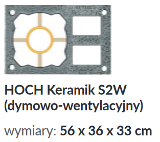 Dla systemu kominowego HOCH KERAMIK wskład zestawu podstawowego wchodzą pustaki, rury ceramiczne, trójnik rewizyjny, trójnik przyłączeniowy, odskraplacz, obejmy rur, saurekit – zaprawa łącząca do ceramiki, drzwiczki kominowe, uszczelki podłączeniowe, zaślepka rewizyjna, wąż na skropliny, płyta czołowa, maskownica odskraplacza, kołnierz uszczelniający (szalunek tracony), stożek, daszek, szablon do otworów, instrukcja montażu.