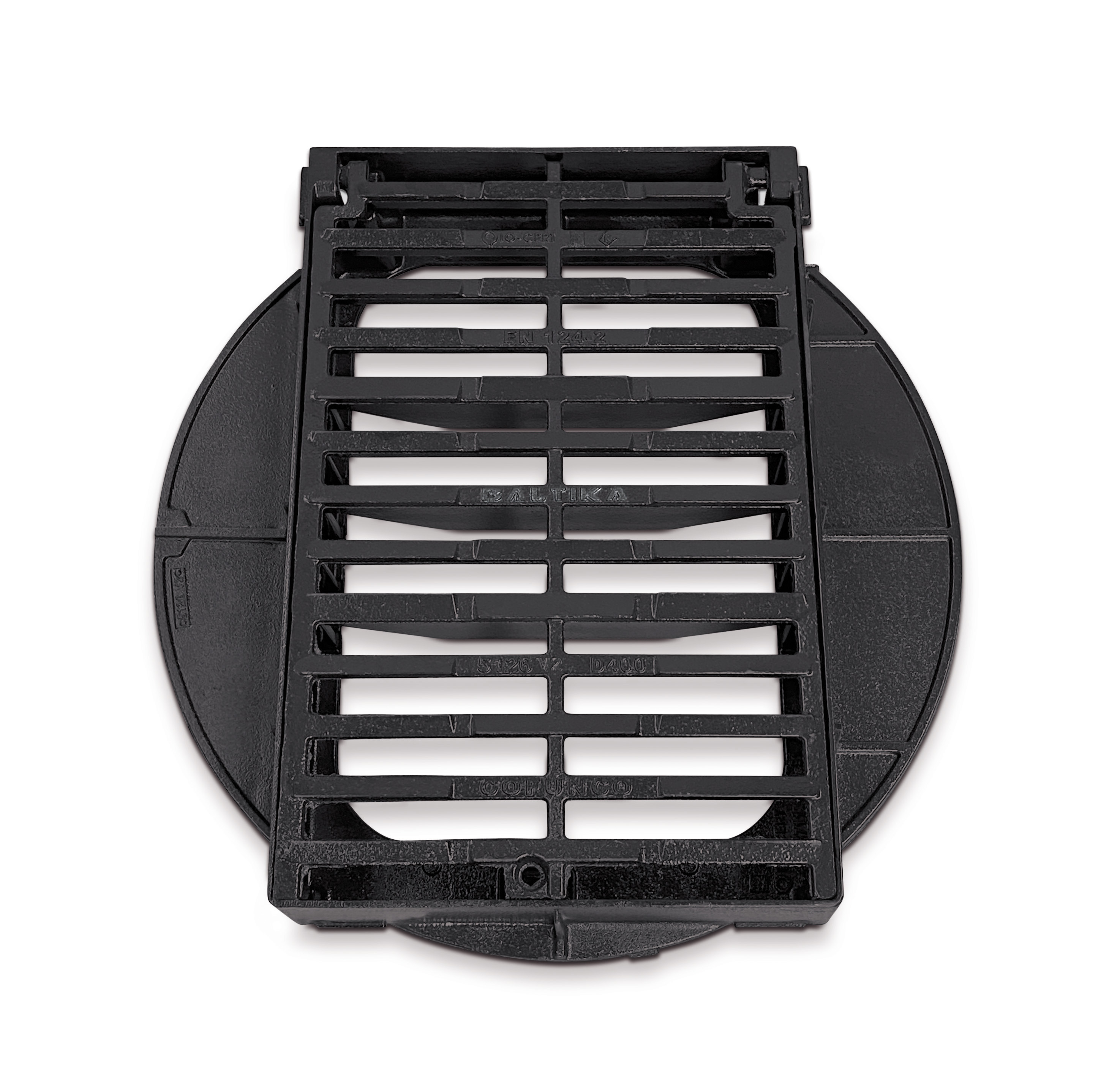 Wpust uliczny 4/4k D400 H115 żeliwny klasy D400 COFUNCO do zwieńczenia betonowych wpustów ulicznych. Najpopularniejszy na polskim rynku wpust typ 67 BK zgodny z normą europejską PN-EN 124-2:2015-07, do jego produkcji użyto żeliwa sferoidalnego wytwarzanego zgodnie z normą europejską GS ISO 1083/EN1563, sferoidalność > 95%, cementyt mniej niż 2%. Najlepsze jakościowo żeliwo sferoidalne, opatentowany stop Cronifer V3, własne formuły chemiczne, różne rodzaje stopów żeliwa sferoidalnego opracowane dla poszczególnych klas obciążeń D, E i F.