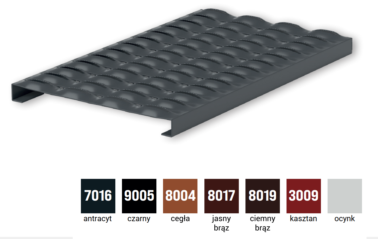Perforacja antypoślizgowa oraz profilowane krawędzie zewnętrzne zwiększają bezpieczeństwo użytkowania. Grubość 2,0mm.