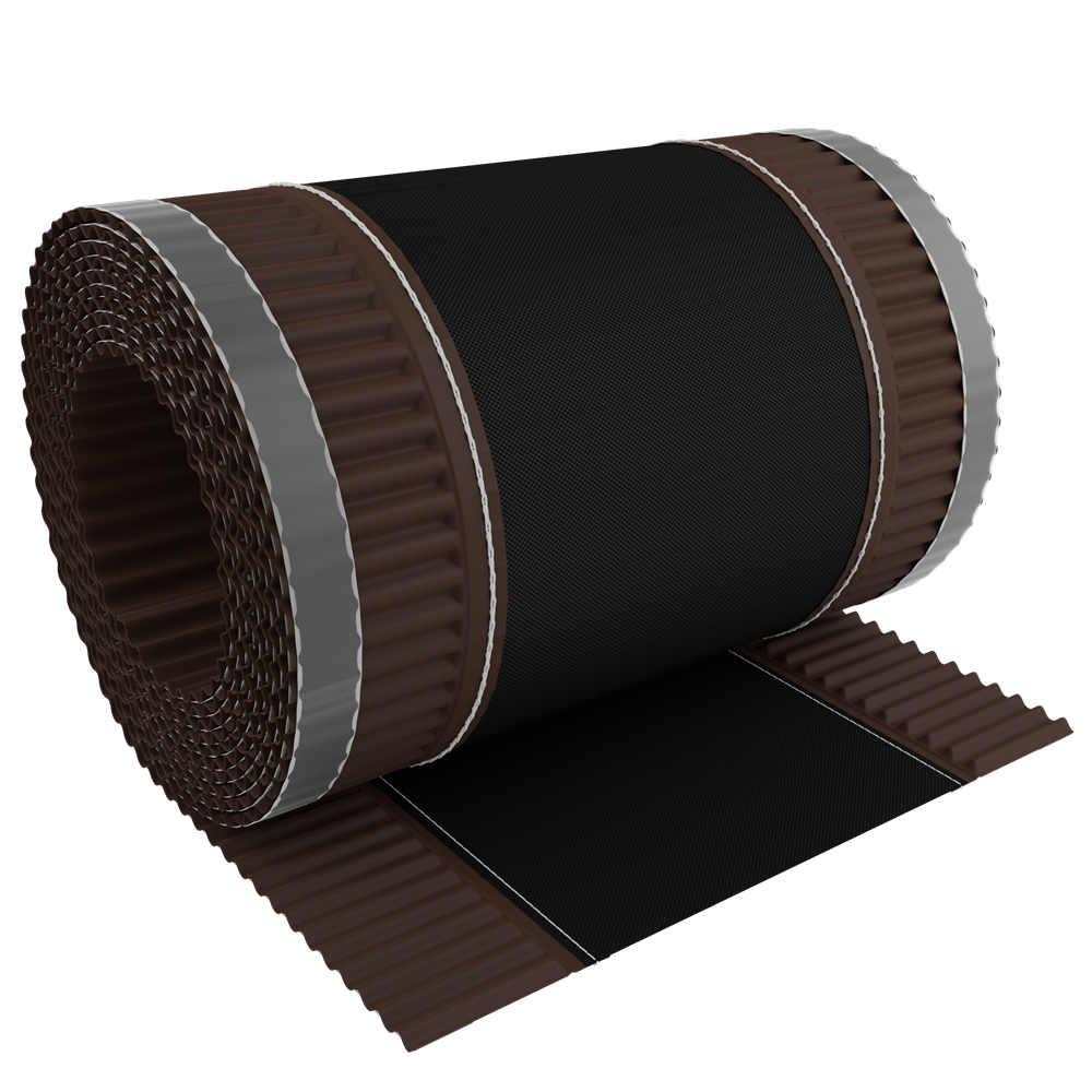 Paroprzepuszczalna taśma kalenicowa wykonana z dwóch pasów plisowanego aluminium oraz wysokiej jakości włókniny polipropylenowej.