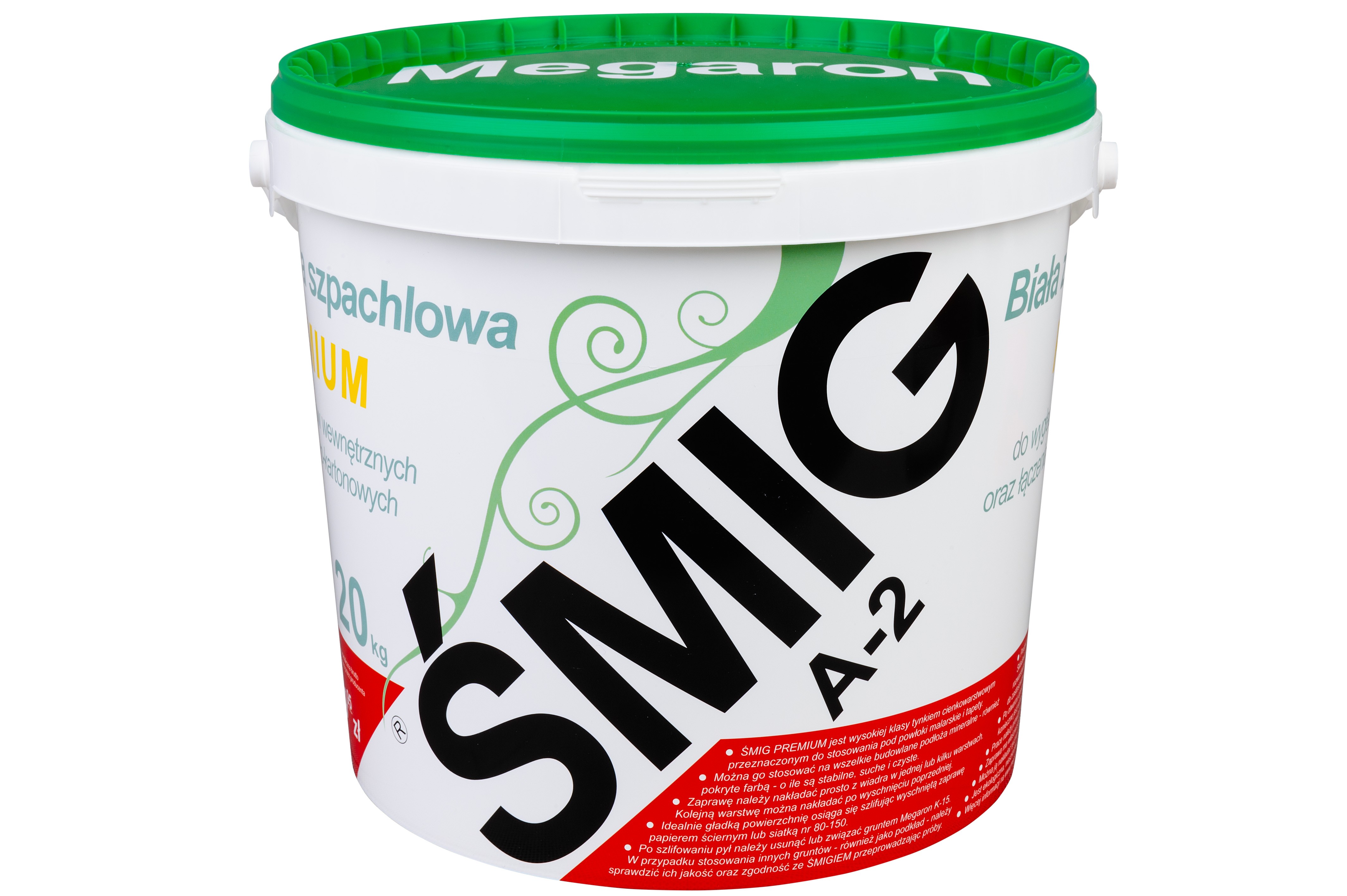 ŚMIG A-2 PREMIUM jest zaprawą budowlaną przeznaczonądo wewnętrznych prac wykończeniowych. Pod względem chemicznym stanowi mieszankę surowców mineralnych, dyspersji polimerowej, chemicznych dodatków modyfikujących oraz wody.