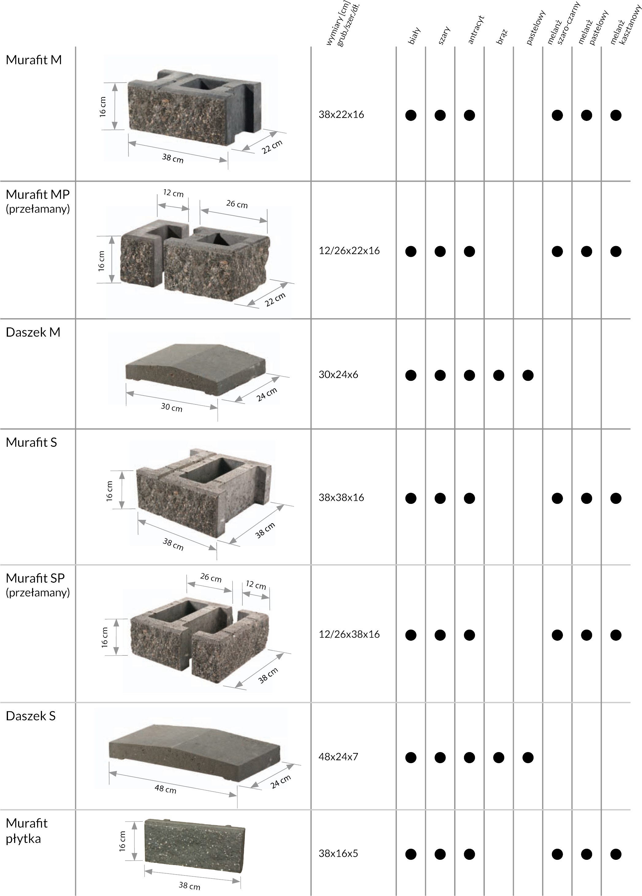 Ogrodzenie Muraflor - palisada łupana 12x12x60, dost. kolory : biały, szary, antracyt, melanż pastelowy, melanż szaro-czarny, melanż kasztanowy
