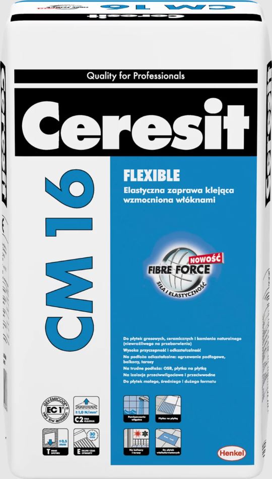 Ceresit CM 16 Express, 25 kg, szybkowiążący, wysokoelastyczny klej do płytek wzmocniony włóknami Fibre Force
