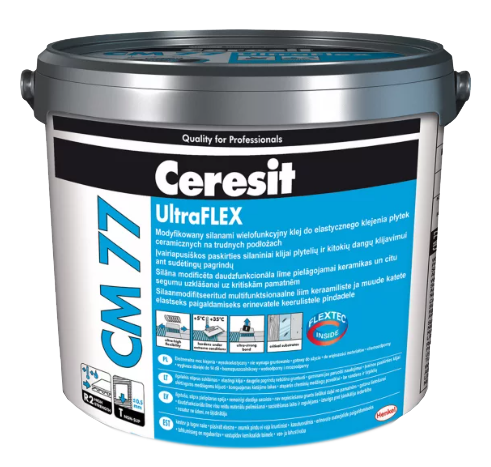 Ceresit CM 77, 8 kg, wielofunkcyjny, gotowy do użycia klej do układania płytek ceramicznych, płyt cementowych i wiórowych, kamienia naturalnego i szklanej mozaiki na trudnych podłożach