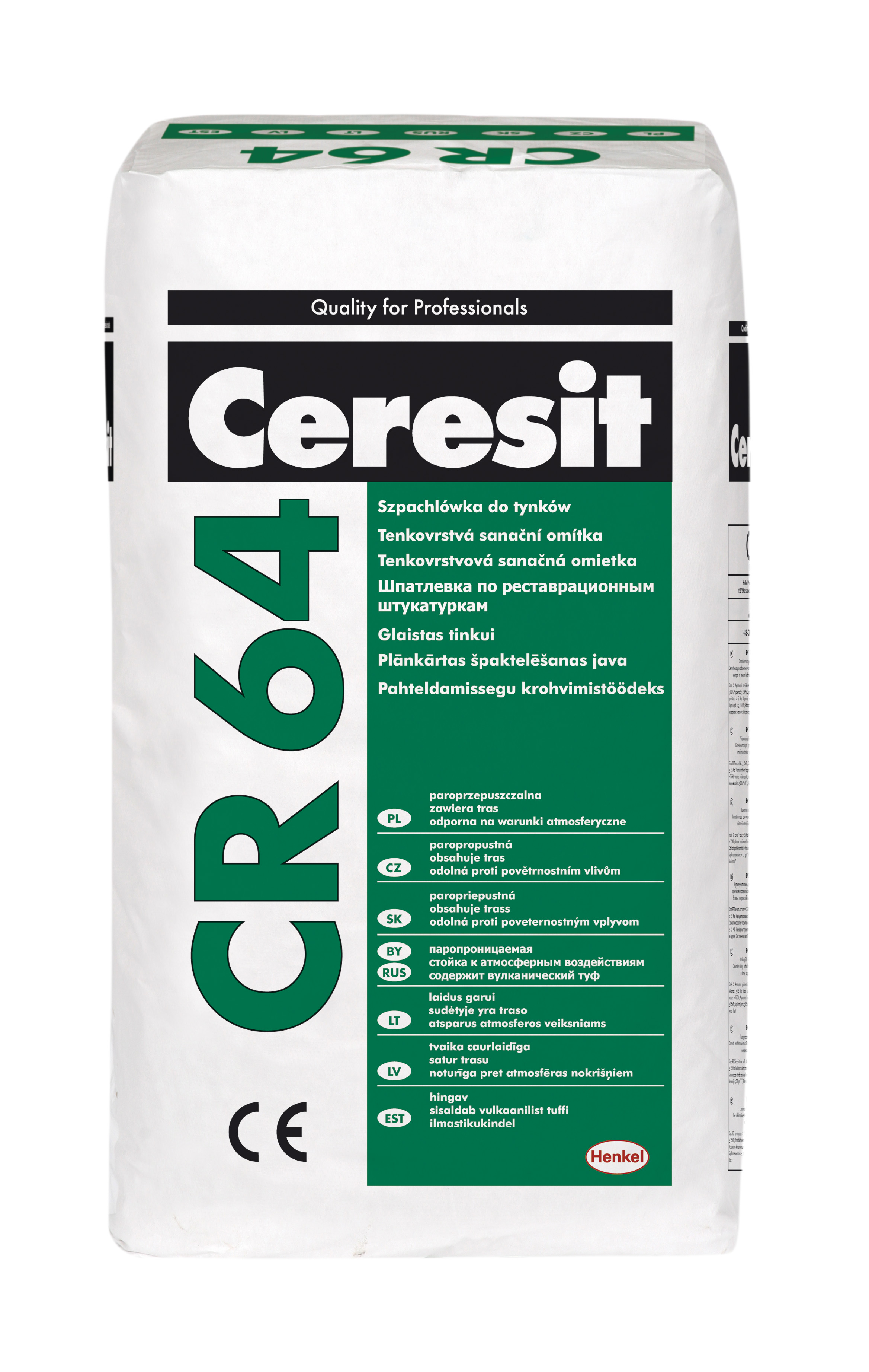 Ceresit CR 64, 25 kg, szara, mineralna szpachlówka do tynków renowacyjnych i tradycyjnych, do wykonywania cienkowarstwowych „przecierek” wewnątrz oraz na zewnątrz budynków
