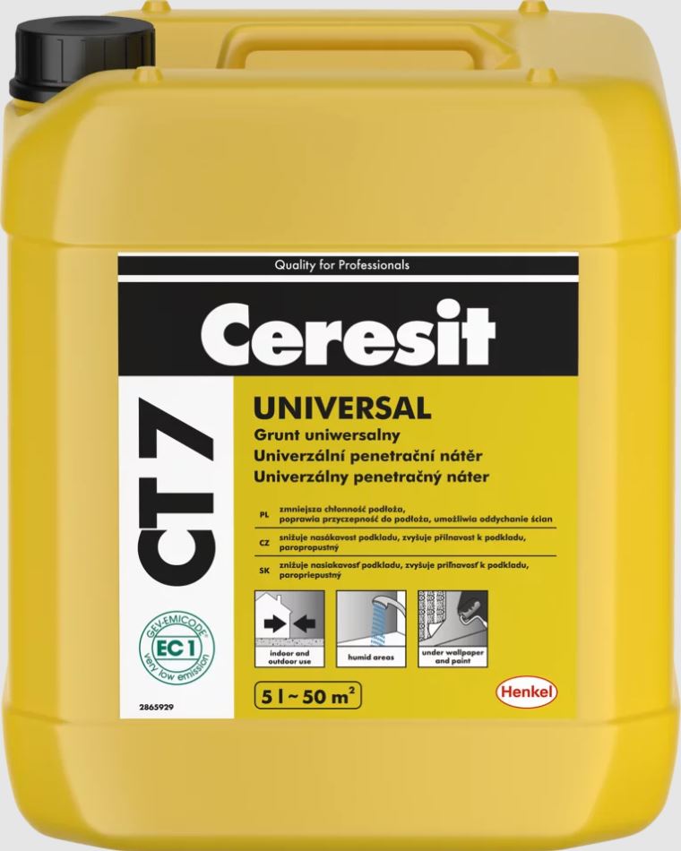Ceresit CT 7, 5 l, grunt uniwersalny do gruntowania podłoży przed mocowaniem płytek ceramicznych oraz płyt izolacji termicznej, malowaniem, tapetowaniem, szpachlowaniem, zmniejszający chłonność podłoża