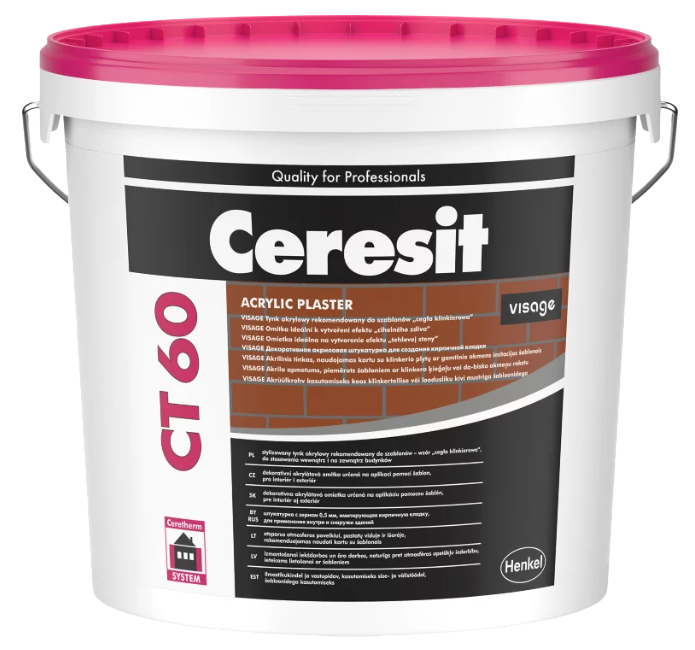Ceresit CT 60 VISAGE grupa A, 25 kg, stylizowany, ozdobny tynk akrylowy rekomendowany do szablonów - wzór cegła klinkierowa lub kamienie naturalne do stosowania wewnątrz i na zewnątrz budynków