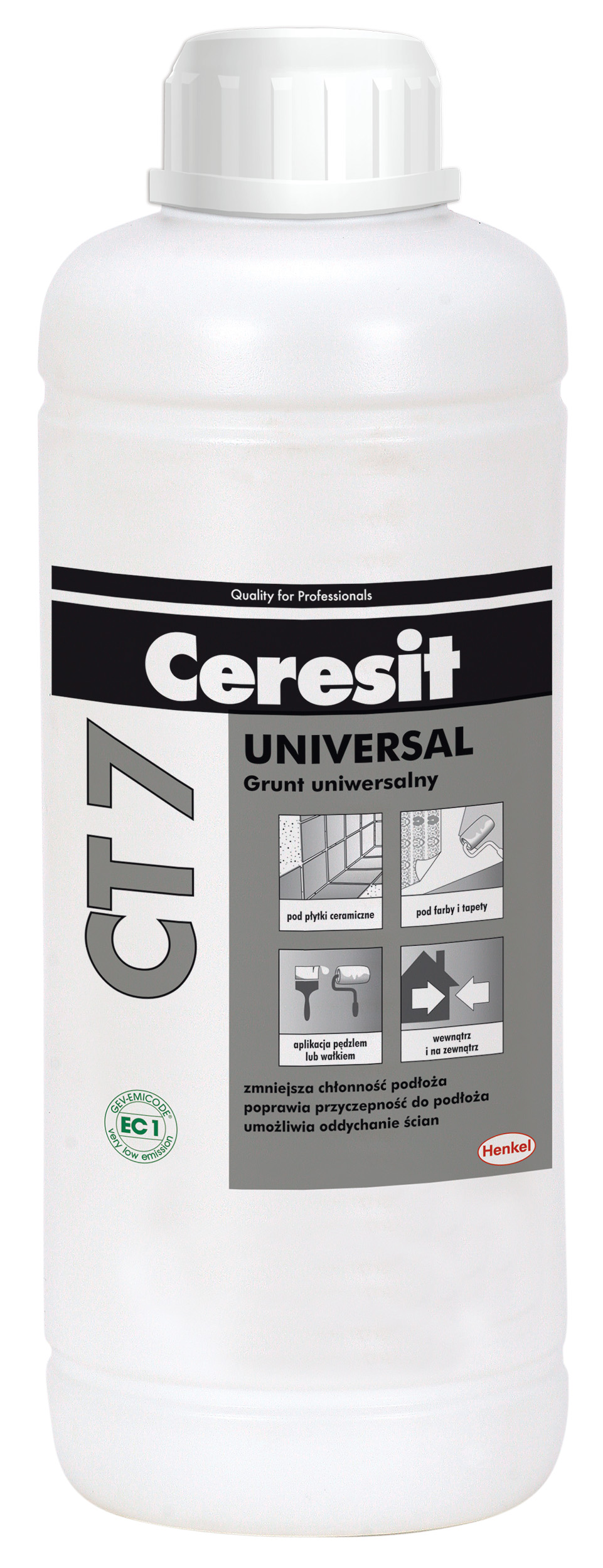 Ceresit CT 7, 1 l, grunt uniwersalny do gruntowania podłoży przed mocowaniem płytek ceramicznych oraz płyt izolacji termicznej, malowaniem, tapetowaniem, szpachlowaniem, zmniejszający chłonność podłoża