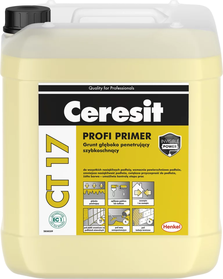 Ceresit CT 17 TRANSPARENT, 5 l, grunt głęboko penetrujący, szybkoschnący do powierzchniowego wzmacniania wszystkich nasiąkliwych podłoży, przyśpieszający pracę, bezbarwny po wyschnięciu