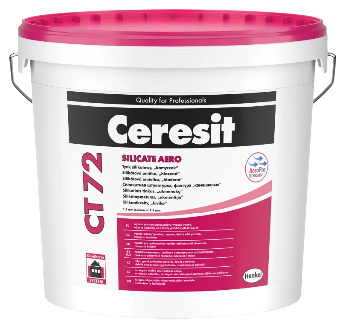 Ceresit CT 72 baza do kolorowania (ziarno 2,5 mm), 25 kg, tynk cienkowarstwowy, faktura „kamyczek”, ziarno 1,5 mm, 2,0 mm i 2,5 mm, dostępny w pełnej palecie barw Ceresit Colours of Nature®