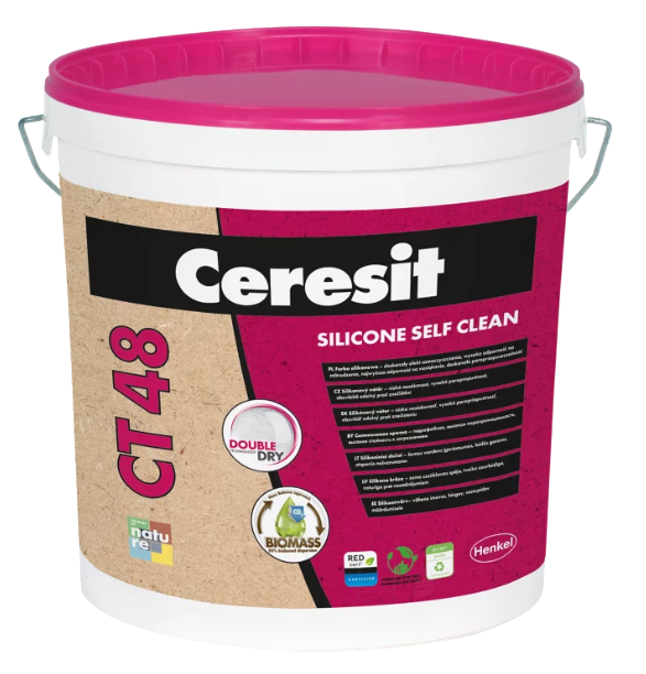 Ceresit CT 48 grupa A, 15 l, hydrofobowa, paroprzepuszczalna farba silikonowa do malowania elewacji i wnętrz budynków, odporna na rozwój grzybów, alg i pleśni, dostępna w pełnej palecie barw Ceresit Colours of Nature®